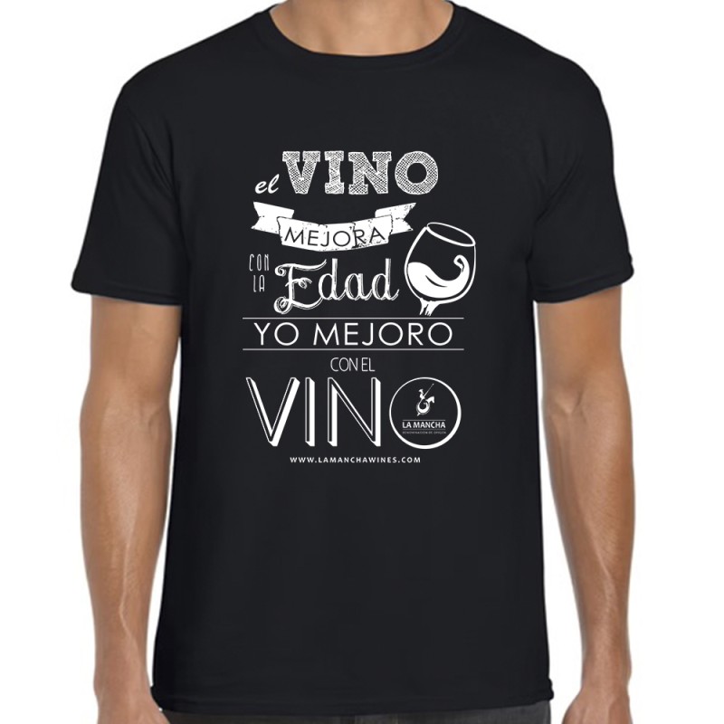 Camiseta original y divertida con versiones en negro, gris, burdeos y blanco. "El vino mejora con la edad, yo mejoro con el vino".